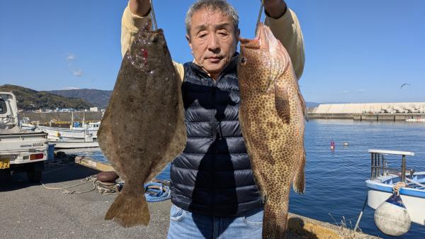 大型オオモンハタボウズなしで今日はヒラメも釣れました。